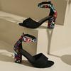 Damen Sommerschuhe 2026 Quadratische Hohe Sandalen Vintage Blumenmuster Offene Zehenpartie Hohe Absätze Damen Lässige Schnalle Knöchelriemen Sandalen