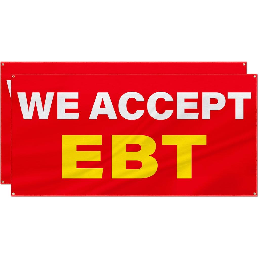 ASUNO 2 Pack 36 x 72 Inch We Accept EBT Banner with Grommets Weatherproof Advertising Polyester Reble Flag for Store Business Office Industrial Yard