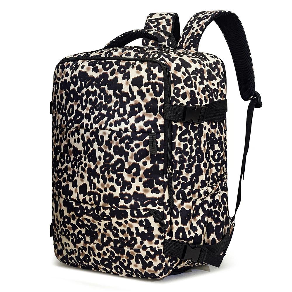 Rucksack mit Leopardenmuster, mehreren Taschen und verstellbaren Trägern