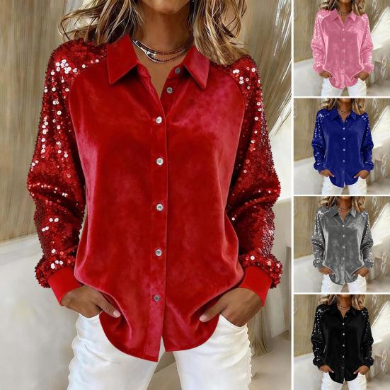 Elegantes glitzerndes Design: Dieses langärmlige Hemd mit Knopfleiste, das mit funkelnden Pailletten versehen ist, die sorgfältig in den Stoff eingearbeitet wurden, versprüht eine glamouröse und festliche Atmosphäre.. Das schimmernde Detail unterstreicht Ihren Look für besondere Anlässe, Partys oder jede Veranstaltung, bei der Sie mit subtiler Raffinesse auffallen möchten.