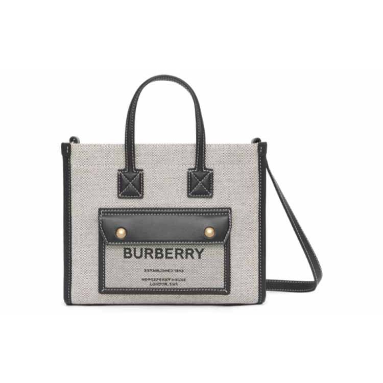 Burberry Freya Large Adjustable Strap Cotton And Calfskin Tote Bag Women Tote Bags Black Gray 80441421