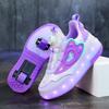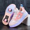 Kinder-Sneaker für Mädchen mit zwei Rollen, leuchtend, pink, LED-Licht, Rollschuhe, USB-Ladefunktion