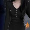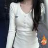 Front-button Embroidered Base Shirt for Women, New Spring-autumn Style, Long-sleeved T-shirt, Slim-fitting, V-neck Top