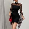 Neues Frühjahrs- und Sommerkleid für Damen Kurzer Rock Hüftbedeckend Sexy Netz Langarm Enganliegend