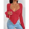 Damen T-Shirt Urlaub V-Ausschnitt Trompetenärmel Taille Unregelmäßig Gestrickt Langarm T-Shirt Top