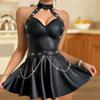 Sexy Leder-Dessous-Einteiler mit Handgelenk-Kettenknopf, sexy Unterwäsche
