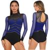 S-XXL Damen Performance Bodysuit: Rhinestone-Netz-Langarm mit Rückenausschnitt & Druckknöpfen im Schritt für Gymnastik, Eiskunstlauf — günstig online bei Joom kaufen