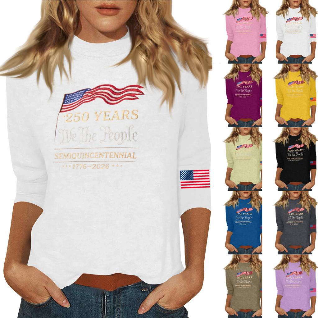 Damenmode Lässig Dreiviertelarm Bedrucktes Rundhals-Oberteil — günstig online bei Joom kaufen