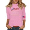 Damenmode Lässig Dreiviertelarm Bedrucktes Rundhals-Oberteil