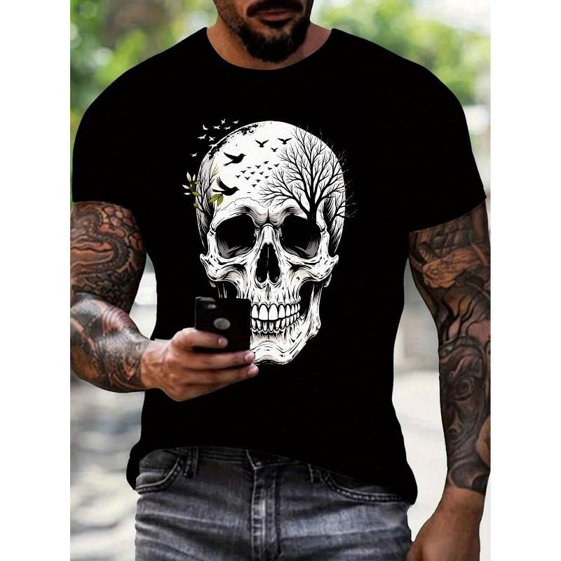 Europäische Größen Herren Grafik T-Shirt - Schwarz-Weiß Kontrastdruck, Reguläre Passform Rundhals Kurzarm, Lässiges Streetwear T-Shirt — günstig online bei Joom kaufen
