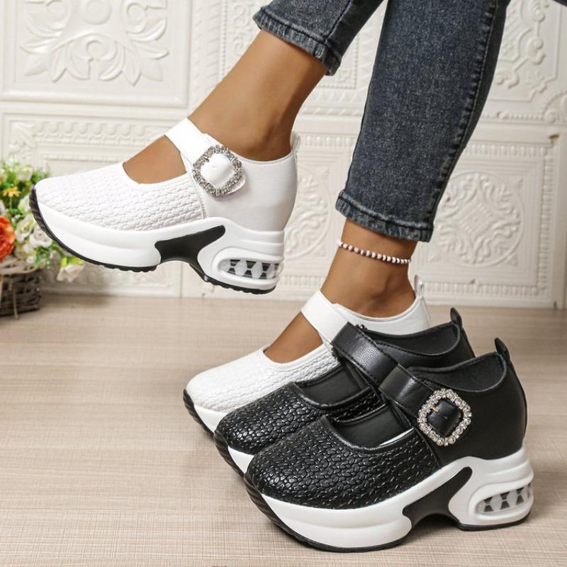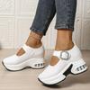 Damen Übergröße Plateau Strassbesatz Slipper Herbst Neu Europäisch Amerikanischer Stil Ein Riemen Schnalle Keilschuhe