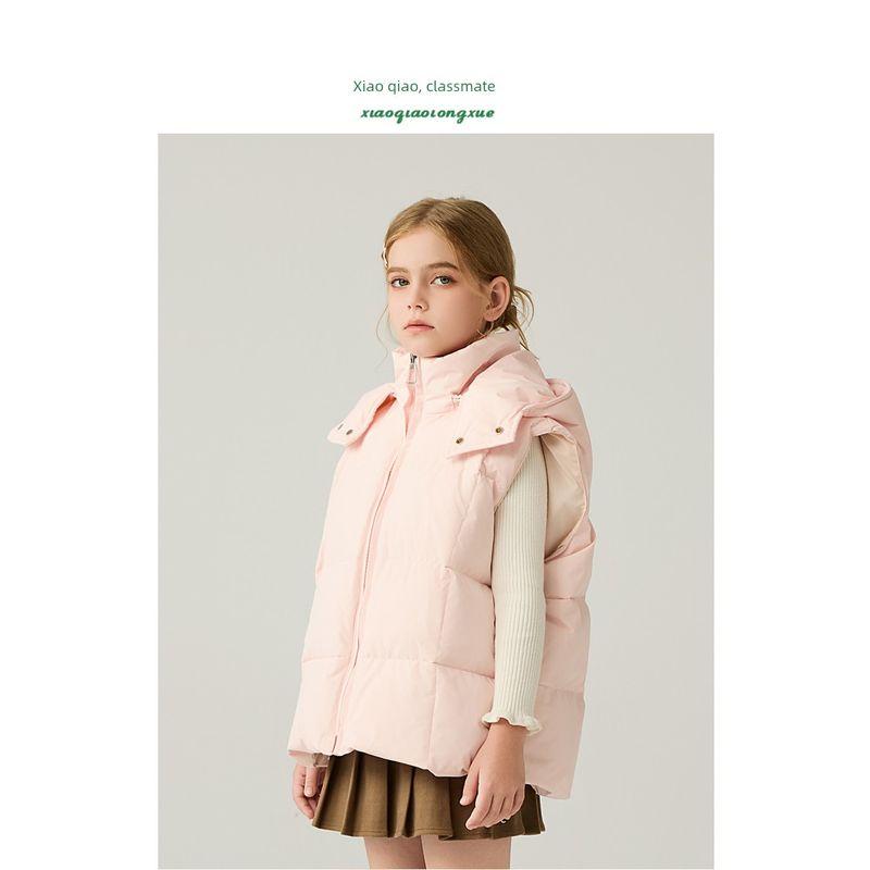 Children's down Vest Autumn and Winter New Style Girls' Warm White Duck down Vest Boys' Hooded Jacket Coat