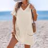 Modischer Damen V-Ausschnitt Tasche Lässig Farbe Gestrickter Badeanzug Überwurf