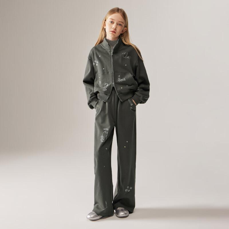 ELLE KIDS Mädchen Sweatshirt mit Strasssteinen, Stehkragen und Reißverschluss