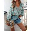 Frühlingsbedrucktes Langarmhemd Elegantes Pendler Oberteil für Damen V-Ausschnitt Lässige Bluse Urlaubs Locker Bequem Streetwear