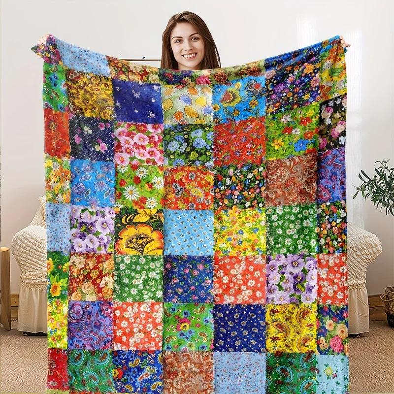 Kuschelige Vintage Blumen-Plaid Flanelldecke-Perfekt für Weihnachten & Thanksgiving Weich & Warm für Couch Bett Reise & Camping