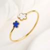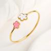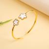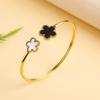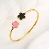 Klassisches Luxus Fünf-Blatt-Blumen Edelstahl Offener Armreif Glücksklee Armreif Mädchen Mädchen Jubiläum Hochzeitsschmuck Cl