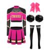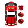 Damen Cheerleading Performance Tanz Outfit Langarm Stehkragen Strass Crop Top Faltenrock Haargummi Set