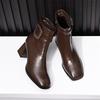 Neue Herbst- und Winter-Französische Retro-Quadratkopf-DickeAbsatz-Kurzstiefel Temperament Seitenreißverschluss Mode Stiefel