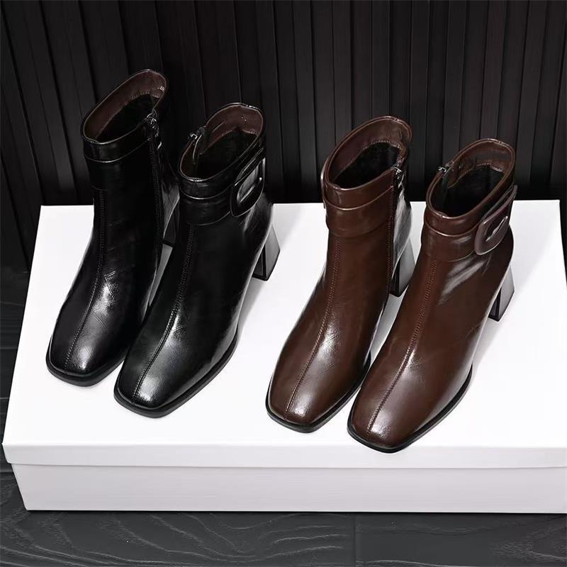 New autumn and winter French retro square head thick heel short boots temperament side zipper fashion boots — günstig online bei Joom kaufen