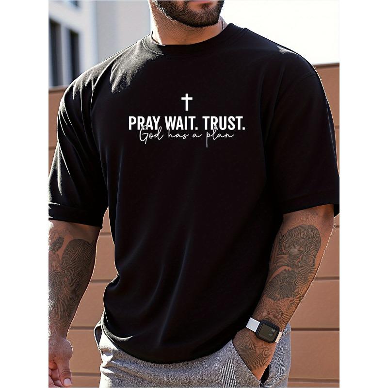 Europäische Größen Herren Schwarz Kurzarm T-Shirt mit Pray Wait Trust God Has A Plan Aufdruck - Lockere Passform Casual T-Shirt, Minimalistisches Design für Sommer Täglich — günstig online bei Joom kaufen