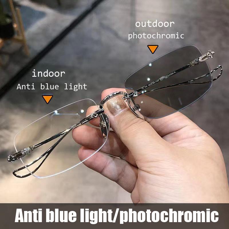 RUISIMO Vintage Rimless Sunglasses Small Square Frame Photochromic Eyewear for Men Women Fashion Sun Glasses