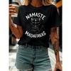 Europäische Größen NAMASTE MADAFAKAS Letter Print T-Shirt, Kurzarm Rundhals Freizeit Oberteil für Sommer & Frühling, Damenbekleidung
