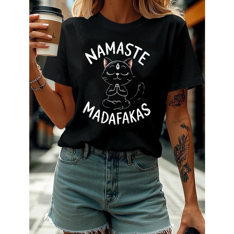 Europäische Größen NAMASTE MADAFAKAS Letter Print T-Shirt, Kurzarm Rundhals Freizeit Oberteil für Sommer & Frühling, Damenbekleidung — günstig online bei Joom kaufen