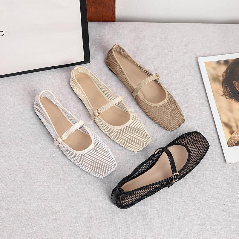 Schickes Design: Die raffinierte eckige Zehenpartie und der Mary-Jane-Flachschuhstil verleihen Ballerinas eine stilvolle Note, und das Netzdesign erzeugt einen strumpfähnlichen, verschwommenen Effekt, der die Schönheit Ihrer Füße zur Geltung bringt.