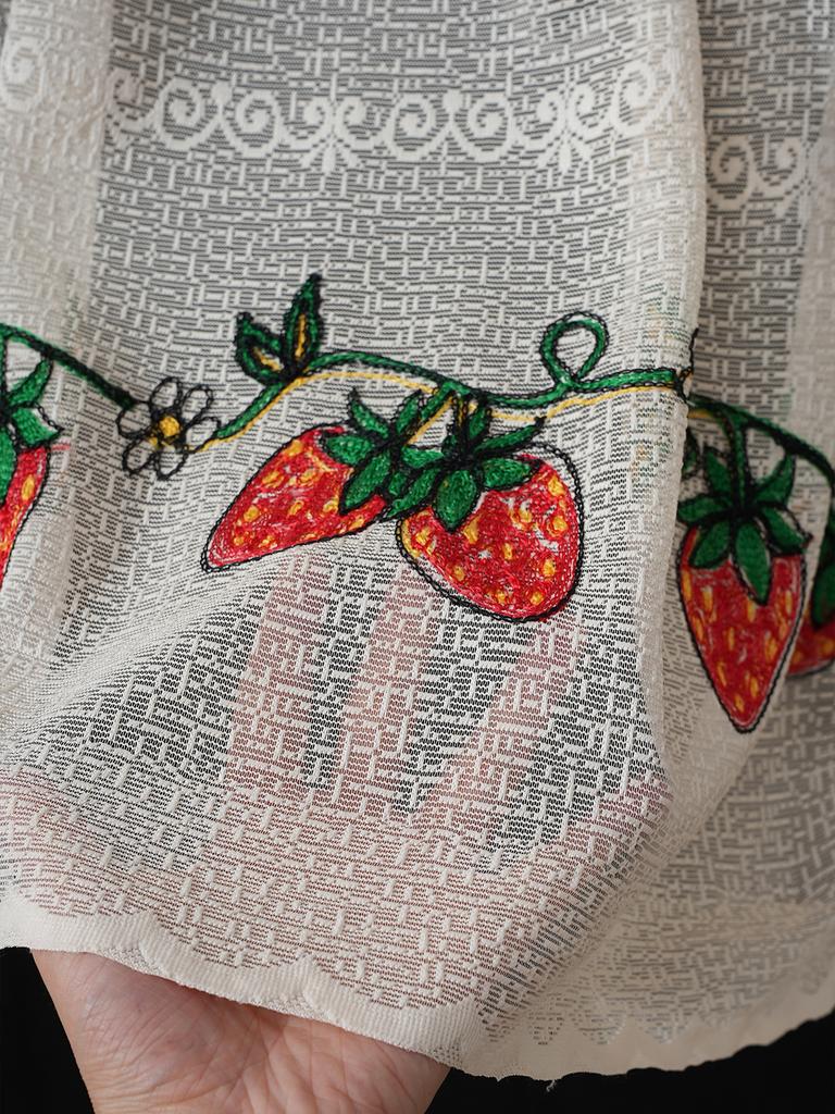 American Style Short Bay Window Curtains No Drilling Simple Style Window Screen Light Permeable Dustproof Strawberry Pattern — günstig online bei Joom kaufen