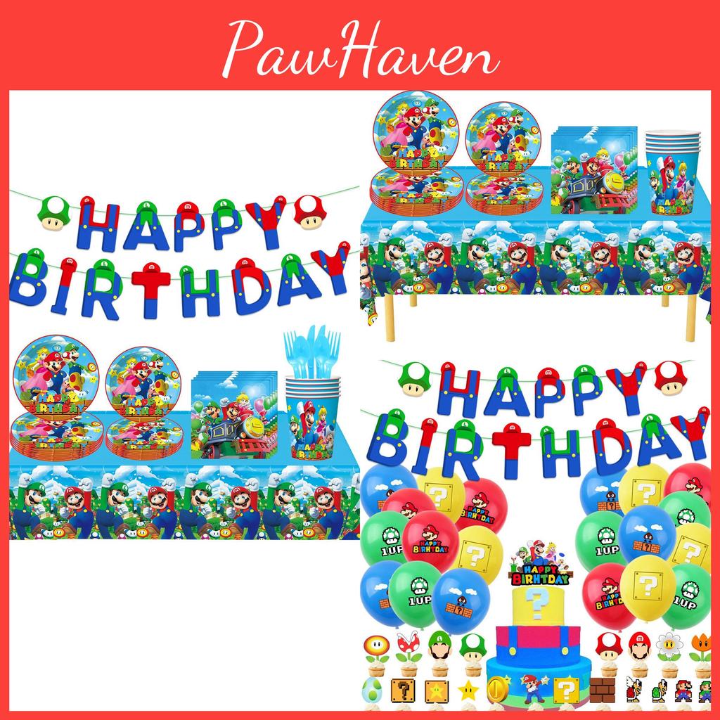 Super Mario Geburtstagsparty Geschirr Dekorationen Pappteller Tischdecke Set für Kinder Partyzubehör — günstig online bei Joom kaufen