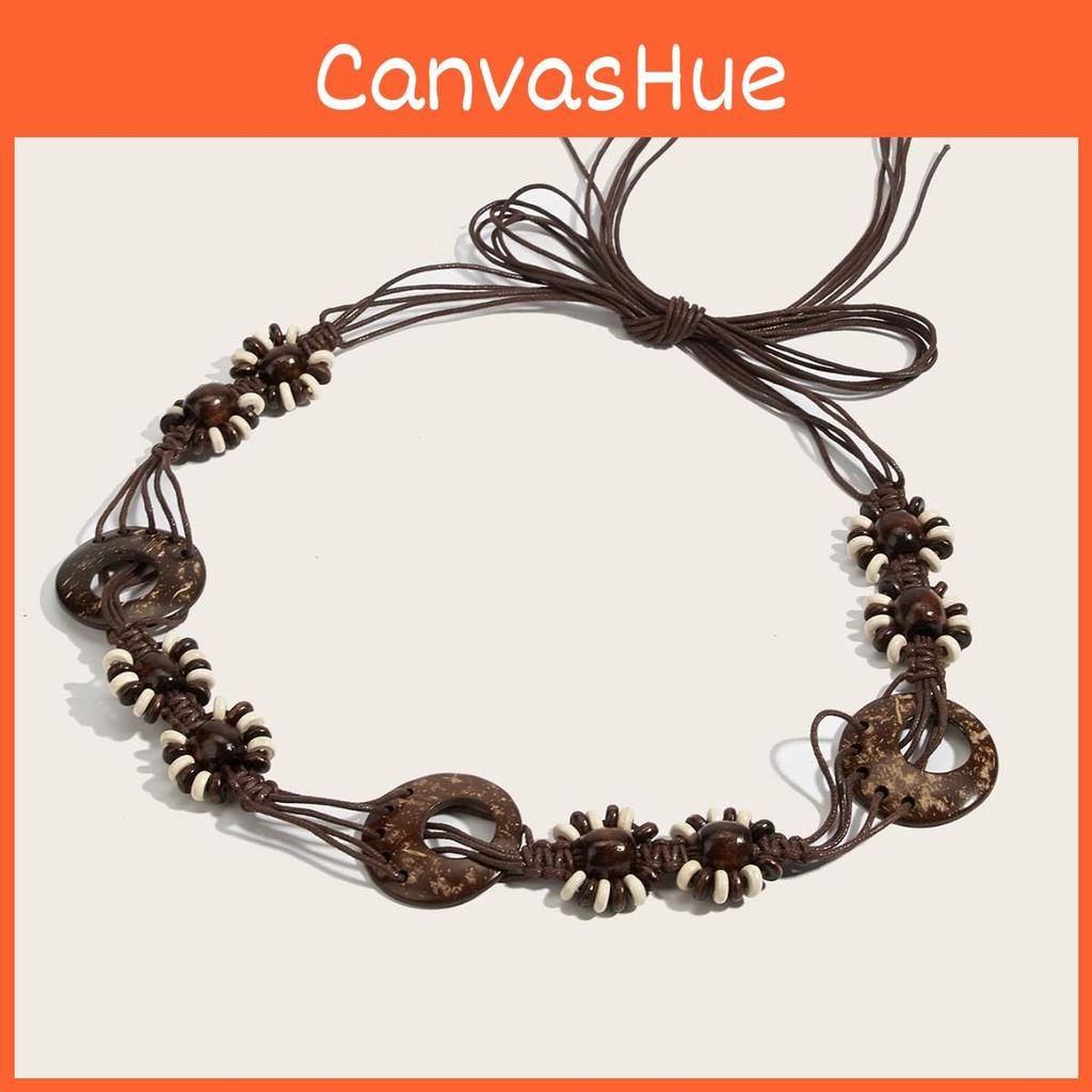 This handmade woven waist rope features a natural waxed cord design with a tie closure, offering a bohemian summer style, with a coconut button for secure fastening. Ideal for casual outdoor activities and beachwear, it can be maintained by wiping clean with a damp cloth.