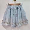 Damen Shorts Jeans Weiter Bein Kurze Hosen Elastischer Bund Knopf Diamanten Vintage Gewaschen Used Sommer Streetwear Denims