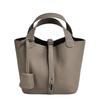 Echte Lederhandtasche, Damenhandtasche aus erster Schicht Rindsleder, lässige Mutter-Kind-Tasche, modische und schlichte Tasche aus Rindsleder mit Litschi-Muster, ein Stück