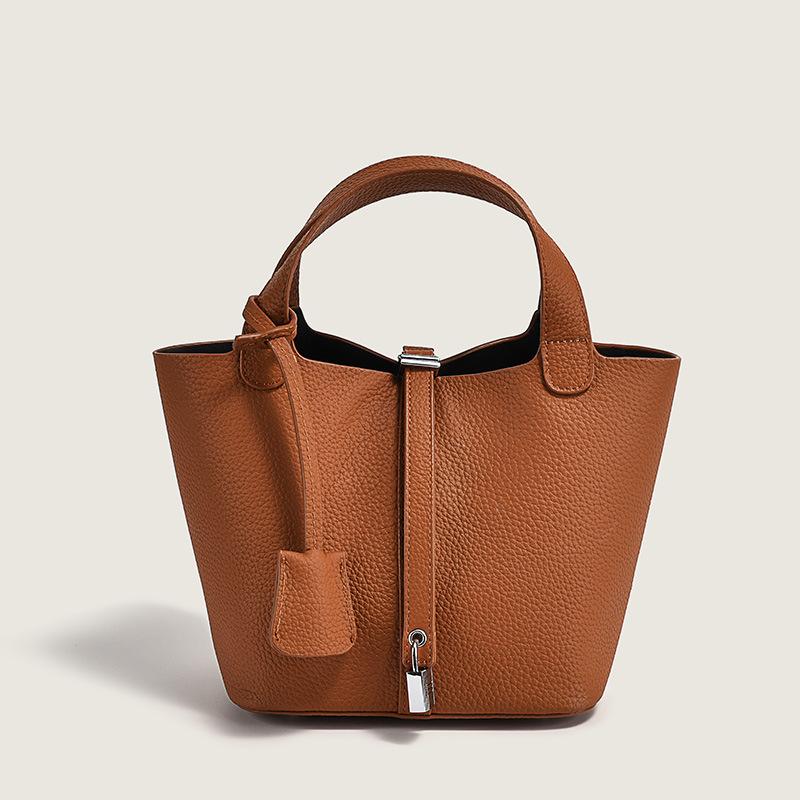 Genuine leather handbag, first layer cowhide women's bag, casual mother and child bag, fashionable and simple lychee pattern cowhide bag, one piece — günstig online bei Joom kaufen