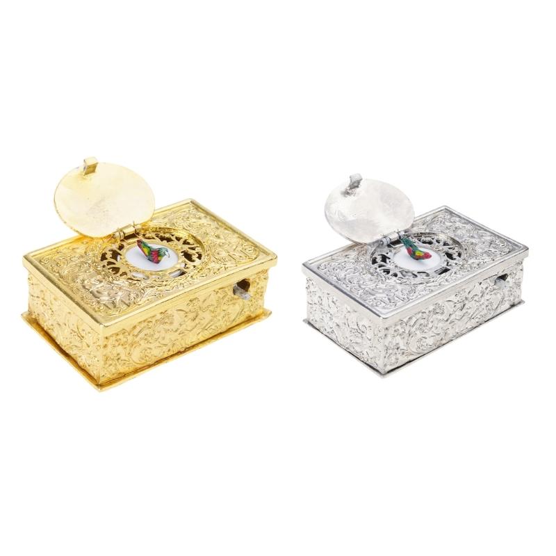 Antiker Gesangsvogel-Schmuck aus Legierung mit geprägtem Engelsmuster Mechanische Spieluhr für Schreibtisch Regal Display Geschenk