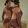 Sexy Latein Tanz Langarm Rückenfrei Oberteil Jumpsuit Body Tanzsport Leotard Latein Training Übung Ausgeschnitten Damen