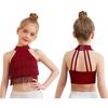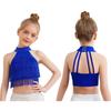 Vielseitiges Latein-Performance-Oberteil für Mädchen: Fransen Crop Top mit offenem Rücken & mehrlagigen Quasten für Salsa, Tanz & Halloween