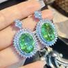 2026 Schwere Industrie Aquamarin Taubenei Großer Edelstein Halskettenanhänger Farbiger Schatz Ohrringe Temperament Zirkon Apfelgrüner Ring