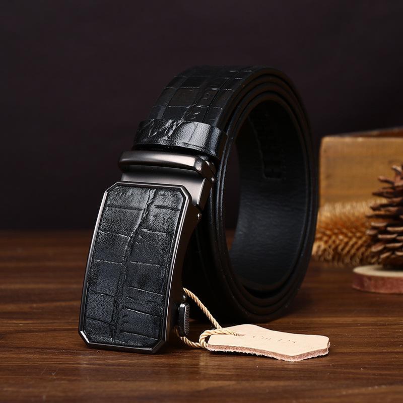 High-End Business Light Luxury Crocodile Embossed Belt Men'S Genuine Leather First Layer Cowhide Automatic Buckle Casual Dress Pants Belt