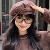 Koreanischer Stil Karierter Wolken-Barett Kurzer Schirm Malerhut Ins Japanischer Knopfhut Mädchen
