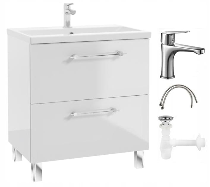 Szafka łazienkowa z umywalką baterią i syfonem 80x80cm Stojąca Biały połysk