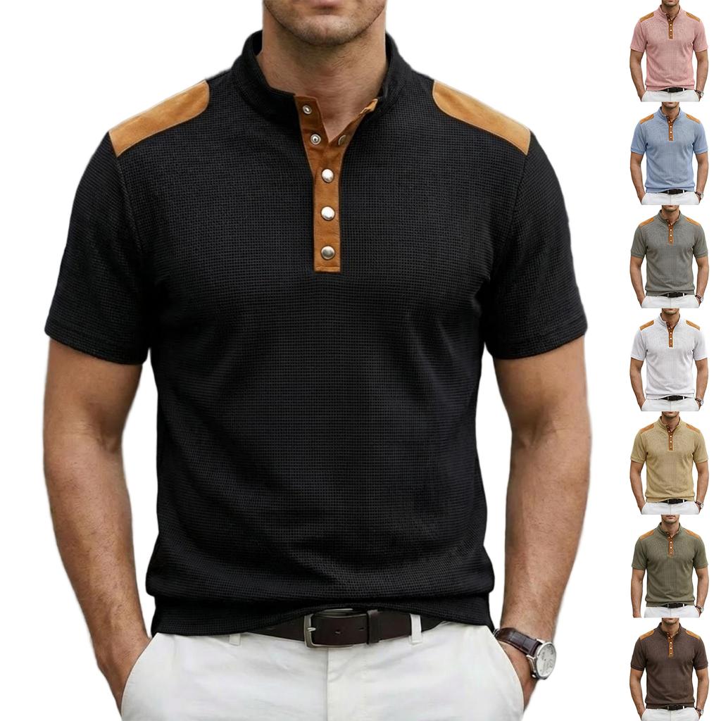 Herren Lässig - Gewebtes Hemd mit Kragen, Farbblock, Leicht, Atmungsaktiv, Kurzarm
