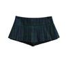 Damen Grüner Karomuster Retro Falten Minirock, Niedrige Taille, Schlankmachend, Anti-Exposure, Petite Passform