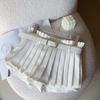 Mini-Faltenrock mit hohem Bund - Weiß, A-Linie, Anti-Exposure, Schlankmachend, College-Stil