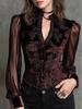 2025 Retro Gothic Velvet Patchwork Shirt - Slimming Long Sleeve Temperament Top for Women