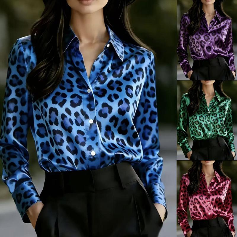 Setzen Sie ein mutiges Mode-Statement mit diesem fesselnden Damen-Freizeitmode-Shirt aus der Frühjahrs-/Herbstkollektion.. Dieses aus luxuriösem Satin gefertigte Hemd besticht durch ein auffälliges Leopardenmuster, das moderne Eleganz ausstrahlt.. Die langen Ärmel und der runde Halsausschnitt verleihen ihm stilvolle Raffinesse und machen es perfekt für jeden lässigen Anlass.. Dieses schicke Stück kombiniert mühelos europäische und amerikanische Einflüsse und schafft so eine vielseitige Ergänzung für Ihre Garderobe.