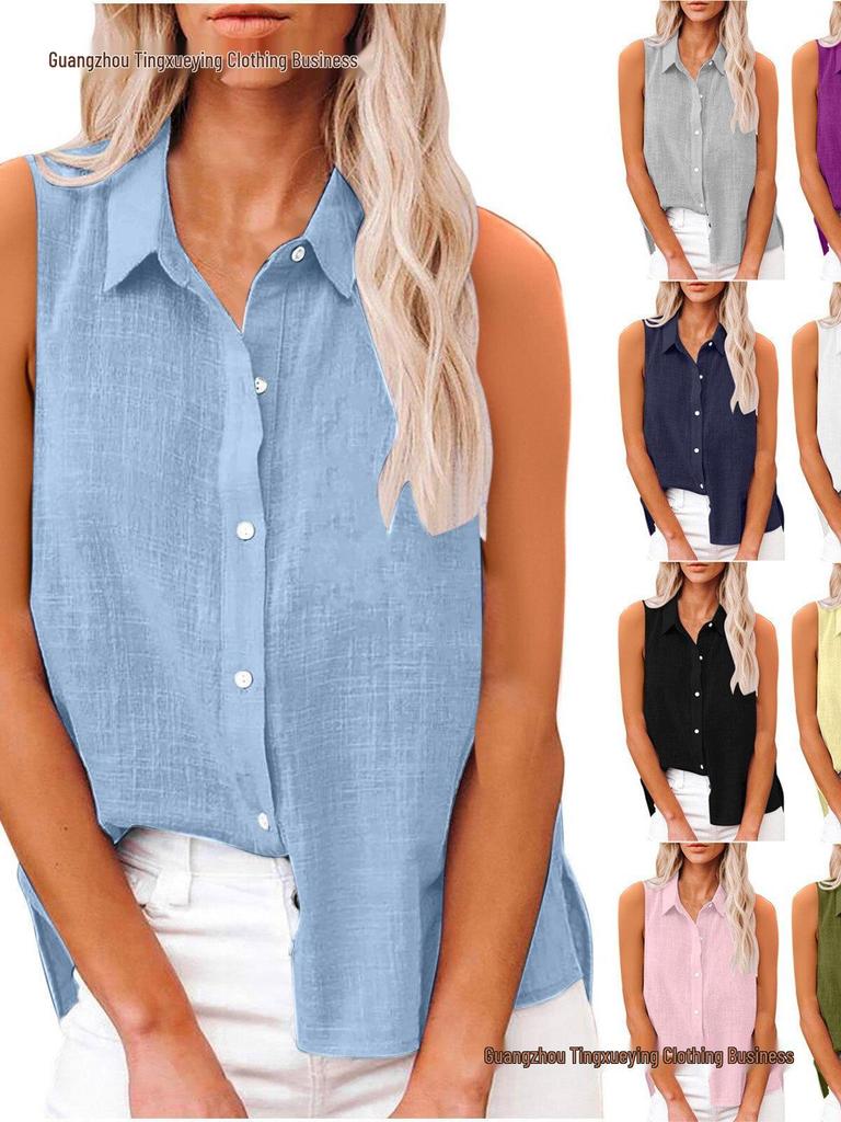 Summer Sleeveless Lapel Cotton Linen Women's Shirt — günstig online bei Joom kaufen