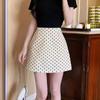 Damen Plus Size Schwarzer gepunkteter A-Linien-Kurzrock - Vielseitig, Hüftbetont, Petite-Freundlich für Frühling/Herbst