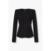 The 25 F/W Women's Textured Chevron Jersey Jacket A525302506 can be styled trendy with innerwear and slacks or skirt. Made from a cotton blend, it offers excellent design and comfort, featuring a two-way zipper design and a chevron pattern point arranged in different directions. Additionally, its shoulder pad detail and stretchy material provide a luxurious silhouette.